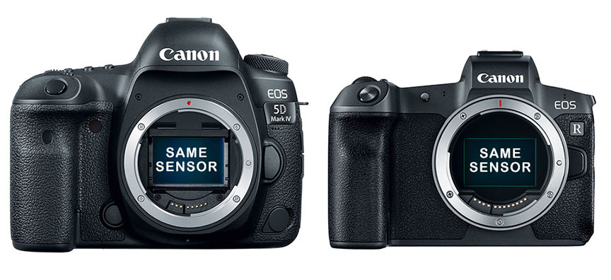 Although the two cameras use the same sensor, The Canon EOS R is easier to handle than the Canon 5D Mark IV because of it's smaller mirrorless design. The more advanced Digic 8 processor makes it a much better value.