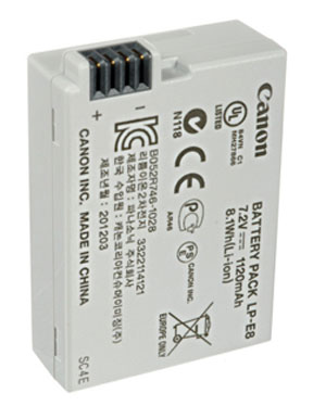 LP-E8Here are the specifications for the Canon Rebel t3i battery.