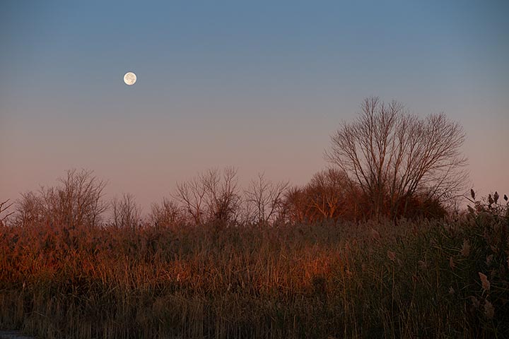 Interestingly enough, the next photo was take about 3 minutes later. Yes, while the sun was rising in the east a full moon was sinking in the west.