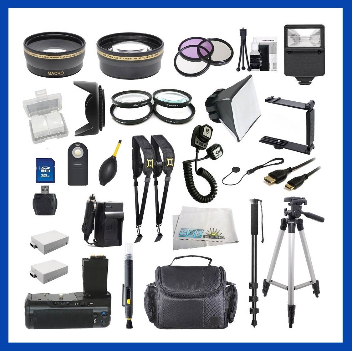 In my research I found a heavily loaded bundle with a huge assortment of gadgets and accessories marketed toward the Canon Rebel user. Take a look at the collection of accessories in the photo of this bundle. It is marketed on Amazon as: